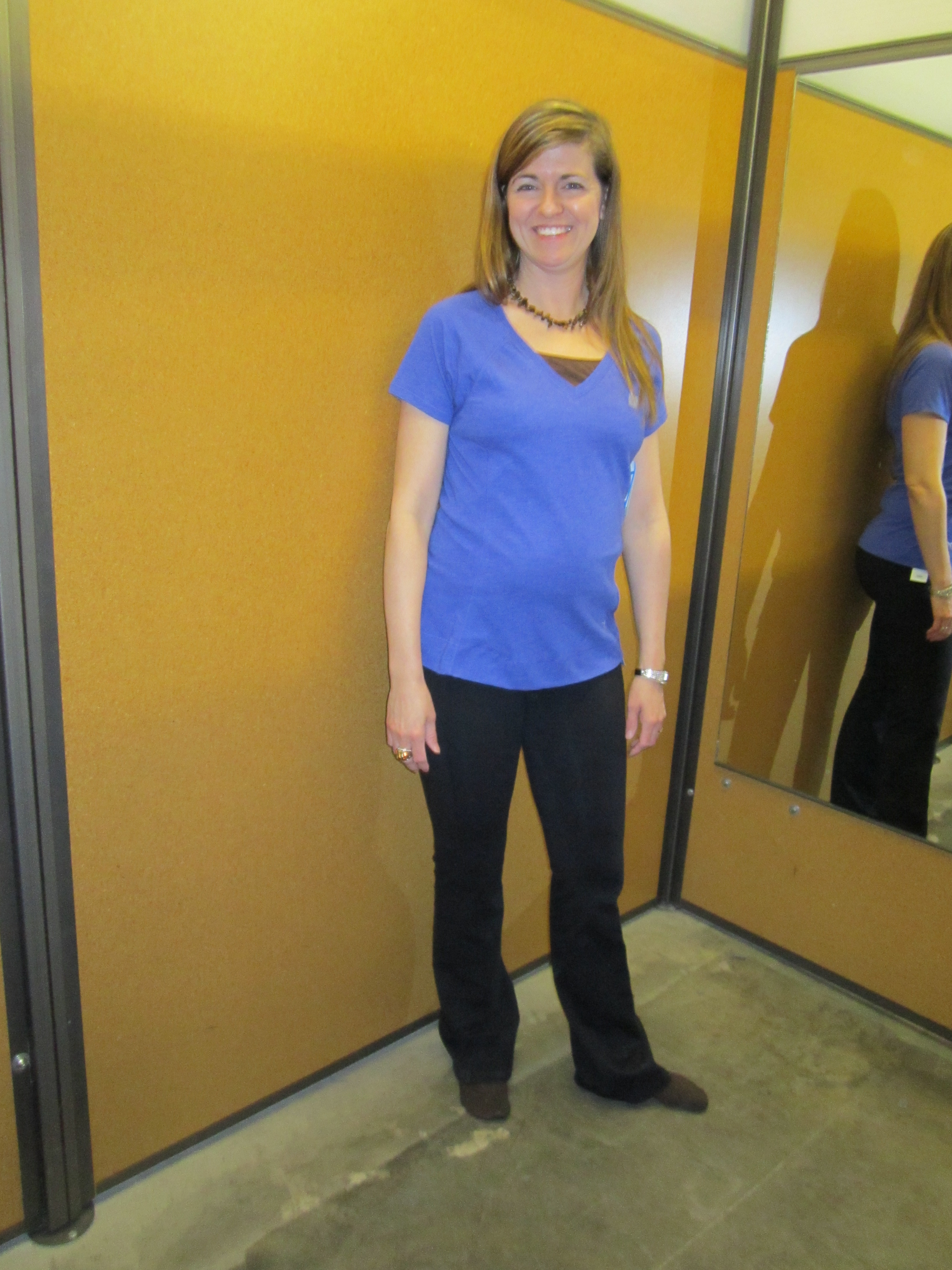 My sister-in-law went with me, and she got a blue shirt and black pants. I haven’t talked her into joining me  for a yoga class yet, but now she’ll be dressed for the part.